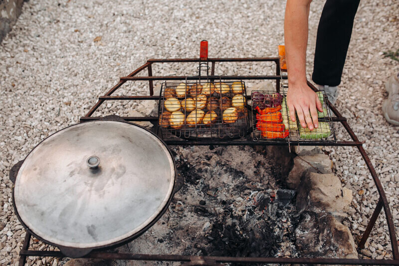 Вы можете сами приготовить еду на костре (дрова/угли оплачиваются отдельно), либо попросить повара приготовить необычайно вкусную хашламу.
