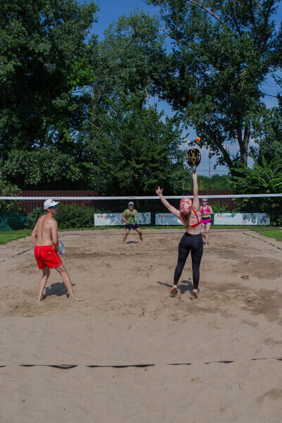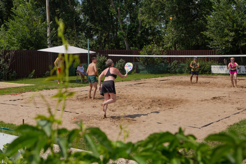 На территории Велопарка располагается 4 корта для пляжного тенниса с песчаным покрытием. Корты соответствуют всем требованиям профессионального спорта. Команда Велопарка готовит их для каждой игры. Рядом есть летний душ, где можно охладиться во время турнира.