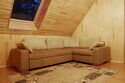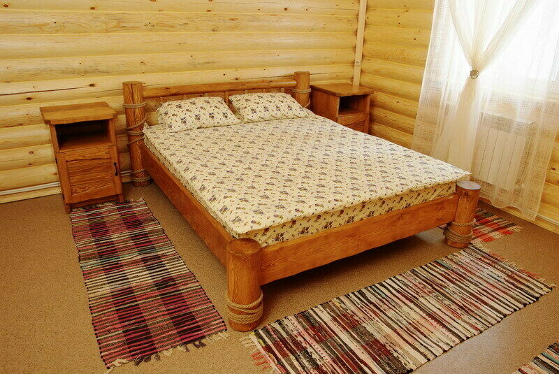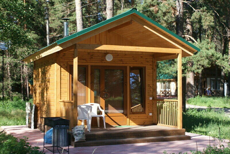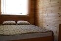Небольшой двухкомнатный домик из бруса идеально подойдет для отдыха небольшой компанией или семьей с подросшими детьми. В спальне две кровати – двух- и полутораспальная. Гостиная-кухня достаточно просторна как для приготовления пищи, так и для семейных посиделок за столом. Просторная деревянная веранда укроет тенью в жаркий полдень или в дождливую погоду.