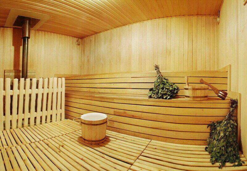 Главная достопримечательность коттеджа – собственно, сама баня. Русская, с веником на дровах. Сердце любой бани – парилка. Здесь она просторная, жаркая, с запахом свежего дерева и звуком потрескивающих поленьев.