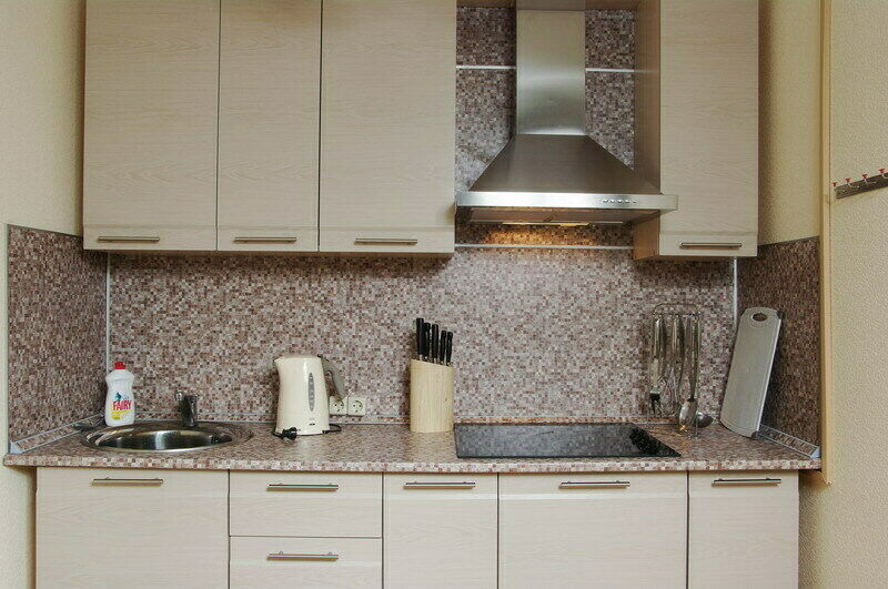 Кухня, гостиная, спальня, душевая кабина.