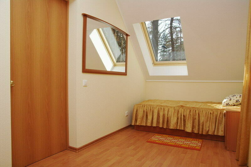Каждый коттедж состоит из двух одинаковых частей с разными входами. Вы можете занять домик целиком для компании на 8 человек или арендовать только половину коттеджа для 2-4 человек.