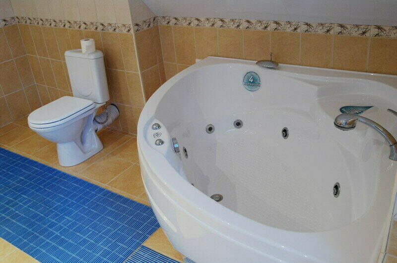 Душевые кабинки и иные удобства для гостей, проживающих в домиках эконом-класса расположены отдельным комплексом.