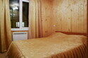 Брусчатый однокомнатный домик вмещает все, что нужно для комфортного отдыха: большая двуспальная кровать, холодильник, кухонная атрибутика. Душевые кабинки и иные удобства для гостей, проживающих в домиках эконом-класса расположены отдельным комплексом, вблизи пляжа.