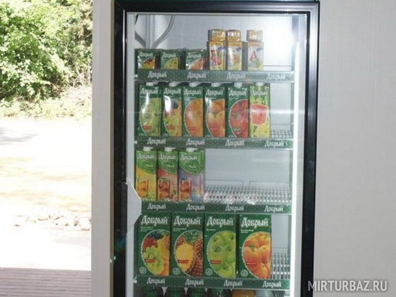 Холодильник, спальня с двуспальной кроватью, веранда со столиком и стульями. Плюс - это кухня с плитой и мини гарнитуром, набор посуды на двоих, а главное из крана на кухне течет холодная вода. Все остальные удобства в санблоке, который расположен в 10 метрах от дома.