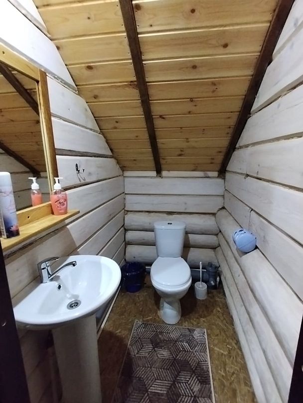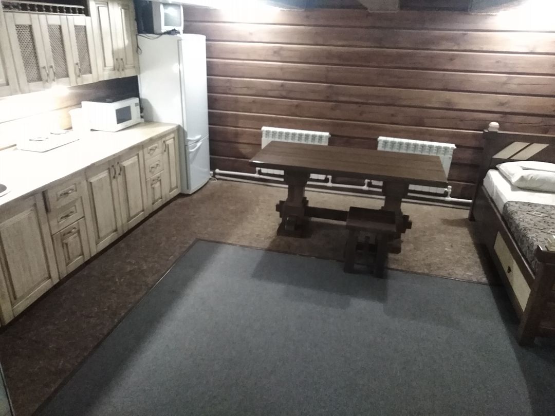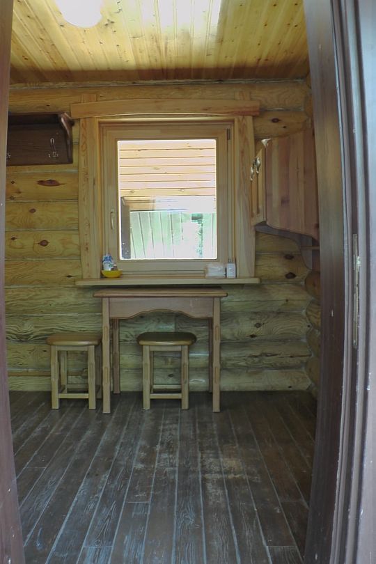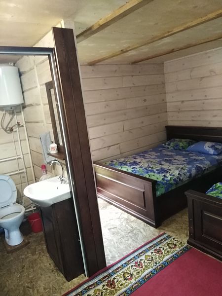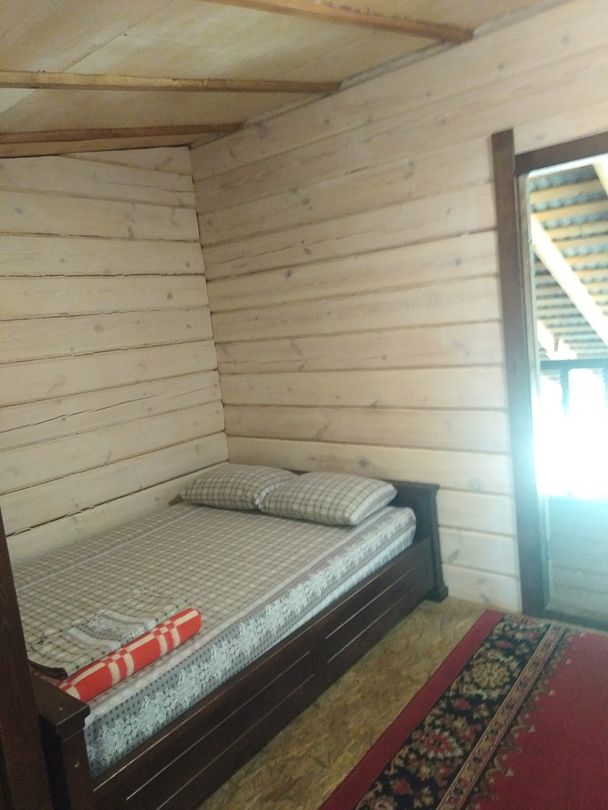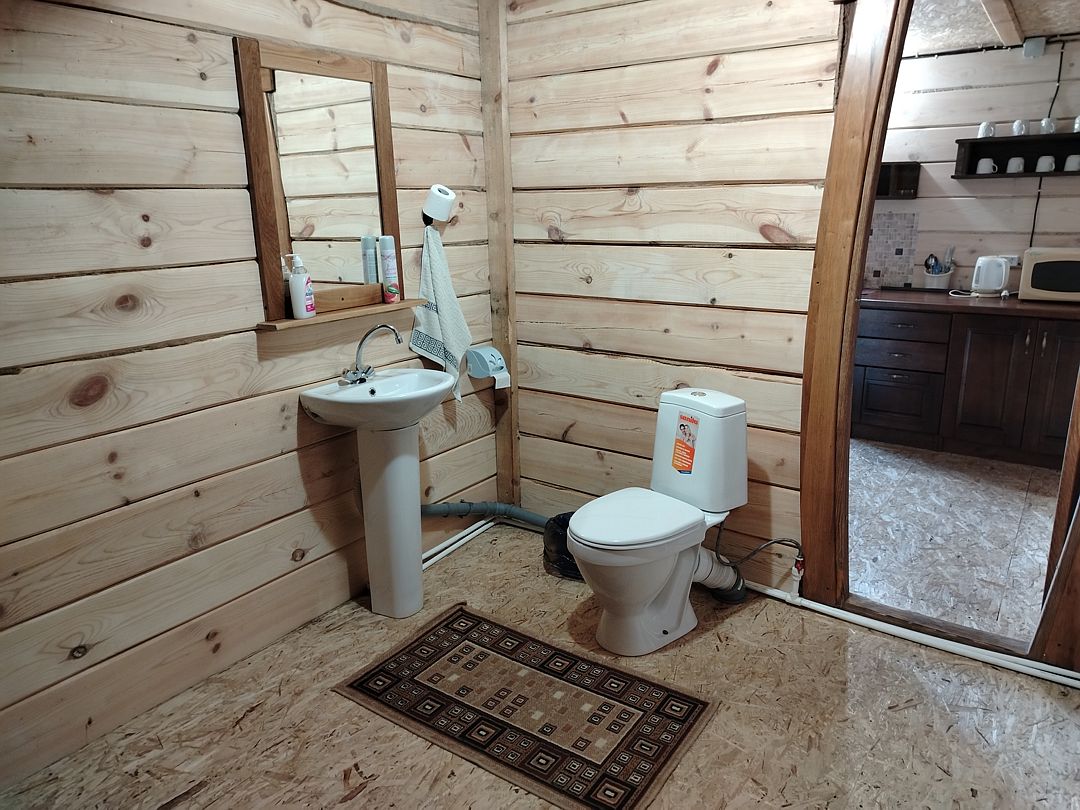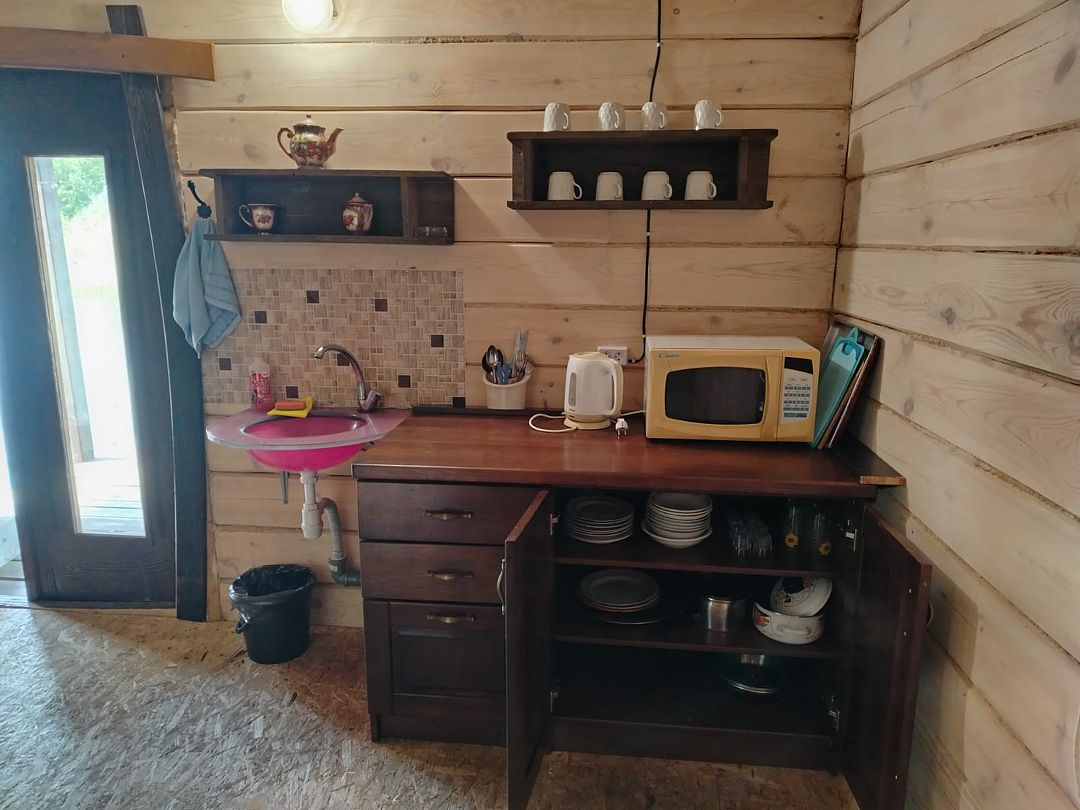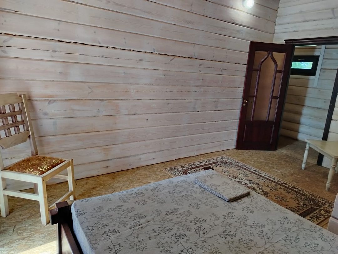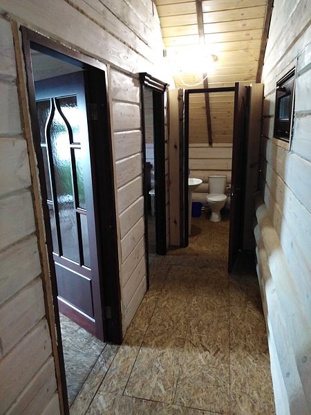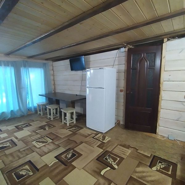 В доме: кухня - столовая ( холодильник, микроволновка, эл. плита, чайник, вся необходимая посуда.) 2 спальные с санузлами, 2 раскладных дивана, баня в доме (за доп. плату), душевая кабина, телевизор, муз. центр. Вся мебель деревянная.