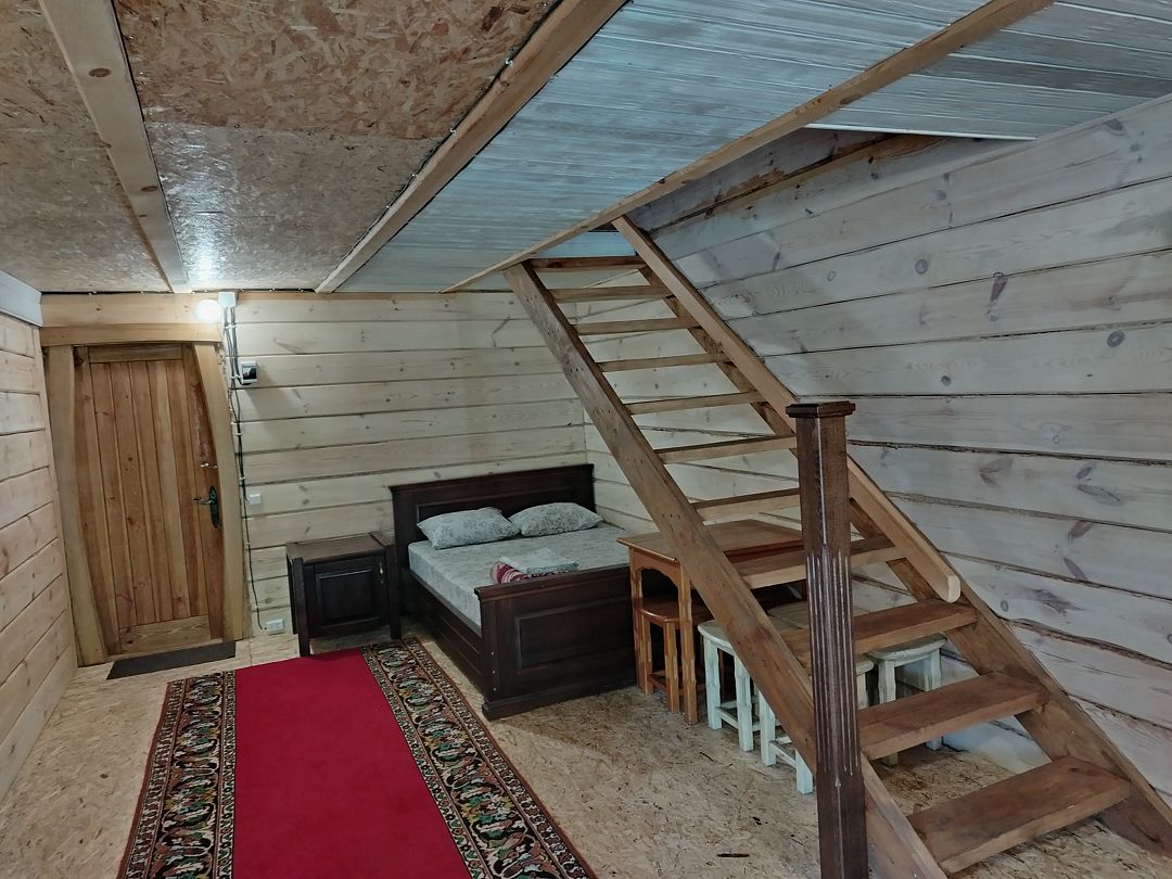 Комфортабельный двухэтажный срубовый дом с деревянной мебелью на 8 человек. В доме есть: