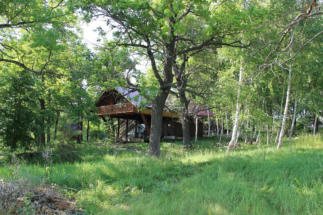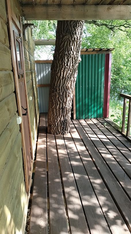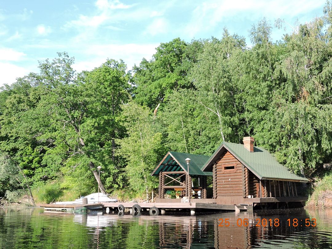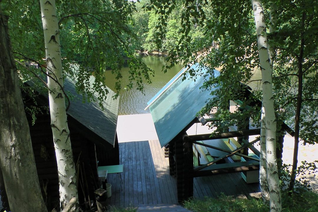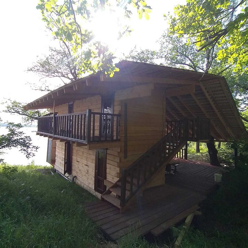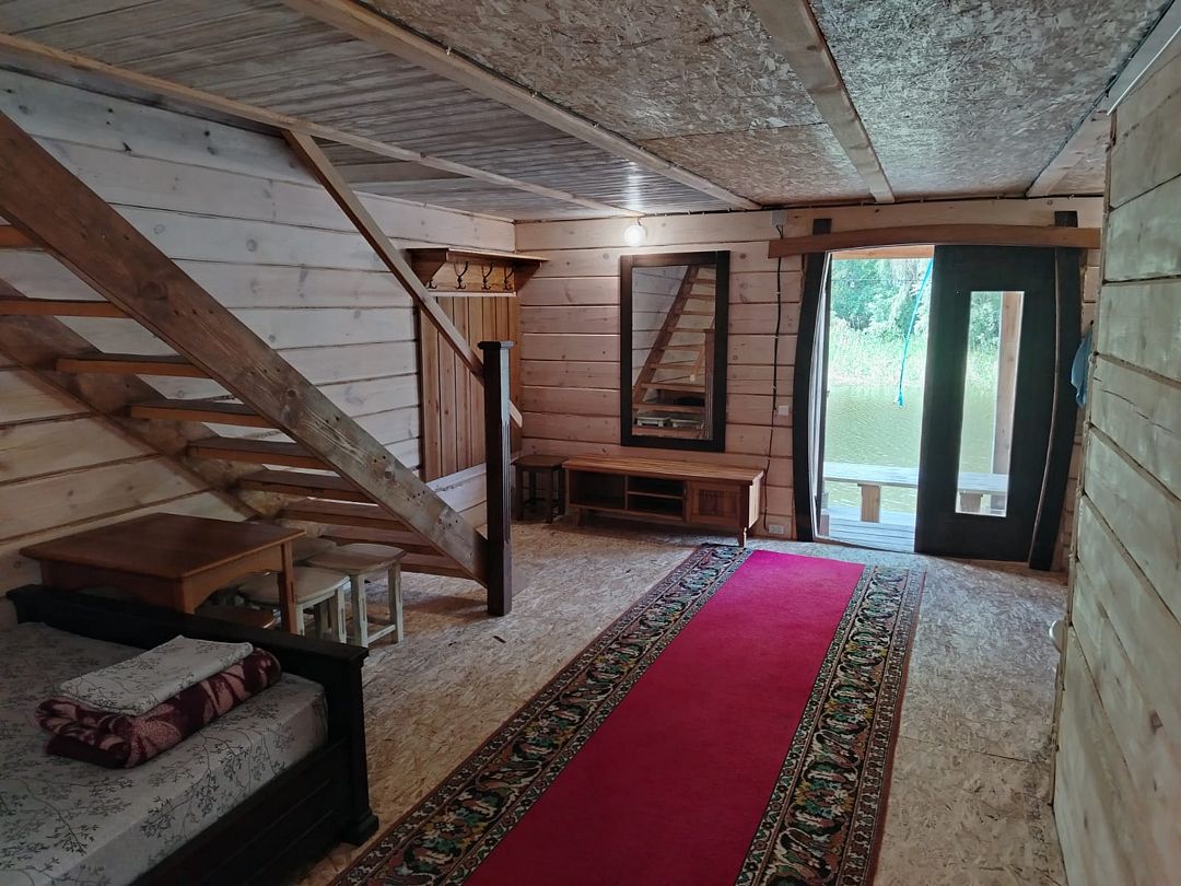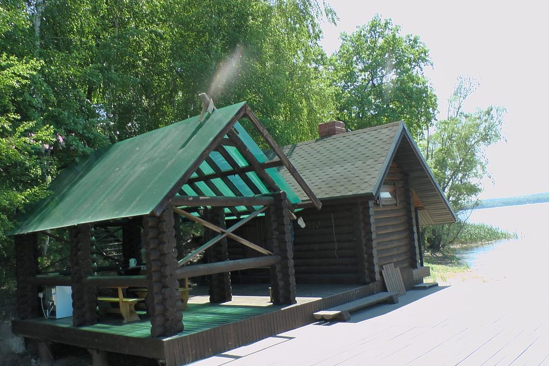 Уединенный, срубовый дом на 8 мест с уличным бассейном 6 м*6 м ( дом расположен за заливом от основной территории, от него до реки 5 минут на машине)