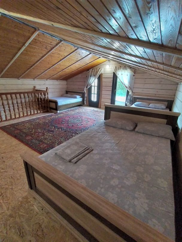 На первом этаже 2 отдельные комнаты с большими удобными двуспальными кроватями и санузлами(постельное чистое и поглаженое входит).
