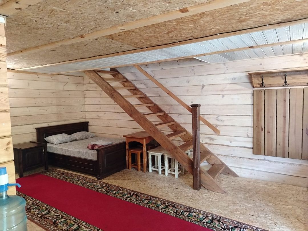 К Вашим услугам будут предоставлены два двухэтажных комфортабельных срубовых дома с деревянной мебелью. Дом "Заимка" расположен в лесной зоне неподалёку от реки Уса. Рассчитан на 8 спальных мест, и кроме них есть дополнительные места. Дом оснащён всеми удобствами — холодильником, микроволновкой, душевой кабиной, телевизором и муз. центром. Для Вас баня (на дровах), своя скважина с чистейшей Артезианской водой, детская площадка, беседка, мангал и решетка для шашлыка.