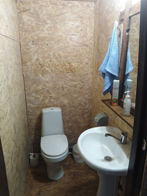 — туалетная комната (горячая и холодная вода, туалетная бумага, мыло, полотенца для лица и рук)
