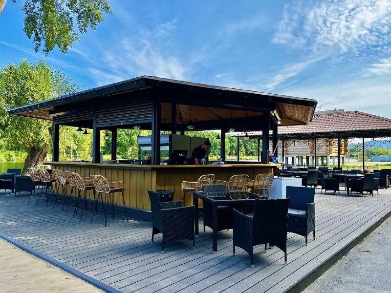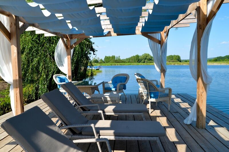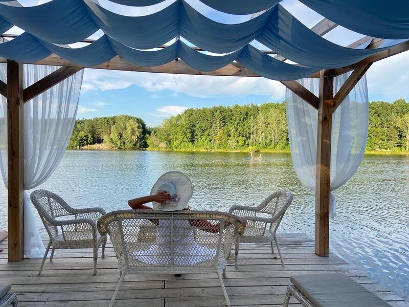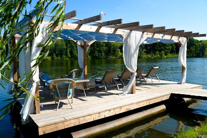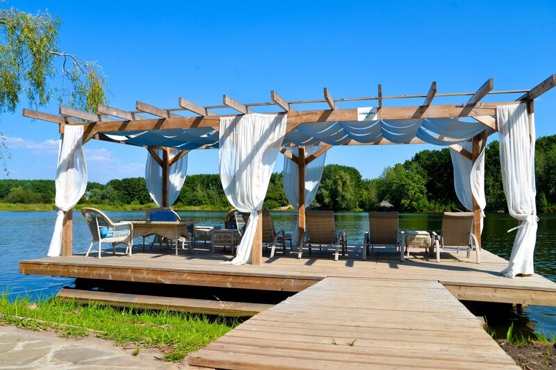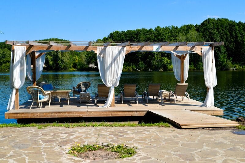 Уютная беседка с видом на озеро, идеально подойдет для проведения корпоративных мероприятий, семейных праздников и дружеских посиделок. В стенах беседки время течёт по-другому, словно приостанавливая свой ход, и каждый гость может насладиться красивейшим пейзажем и, конечно же, трапезой. Отличный вариант загородного отдыха от мегаполиса.