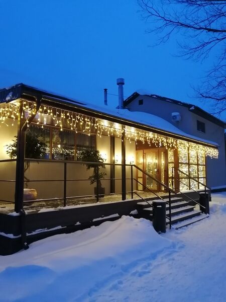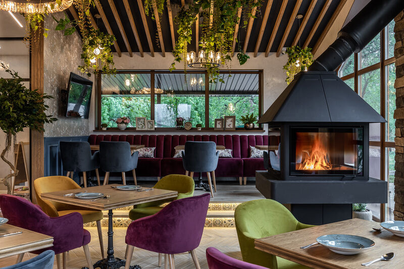Зал рассчитан на 52 человека.- Настоящая печь на дровах