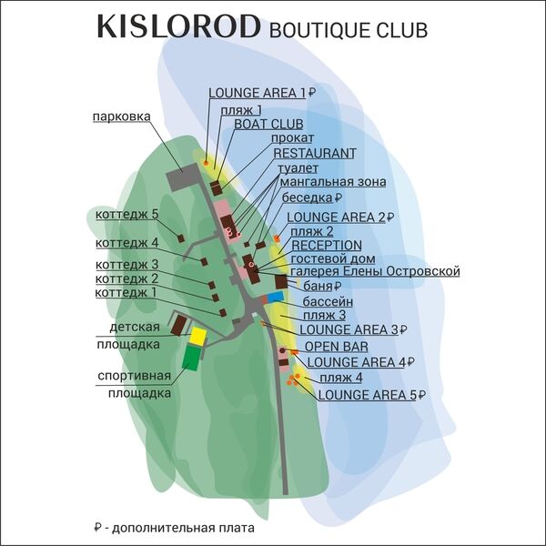 Загородный клуб «KISLOROD» находится на берегу живописного Белого озера. На территории расположены срубовые коттеджи, русская баня на дровах, беседка для отдыха на свежем воздухе, удобный оборудованный пляж. Можно провести время за игрой в футбол или большой теннис, покататься на SUP-бордах или катамаранах.