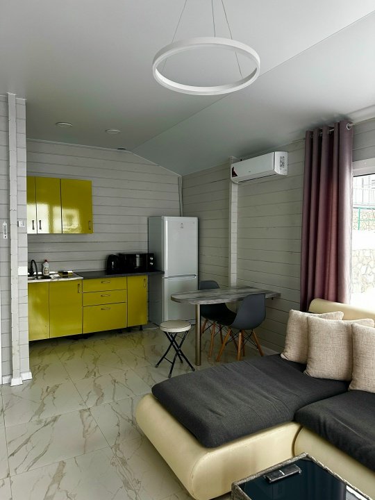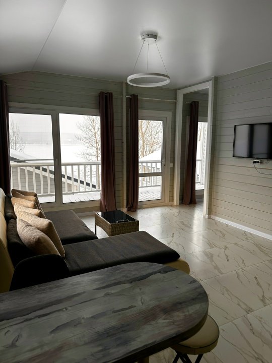 Дом-студия с террасой с видом на р. Волга на первой береговой линии. Гостиная с кухонной зоной, мягким раскладным уголком (+ 2 спальных места), спальная комната с двухспальной кроватью (DBL\TWN), туалетная комната с душем. Номер укомплектован всем необходимым для длительного проживания: кондиционер, телевизор, холодильник, микроволновая печь, духовой шкаф, плита, чайник, кофемашина, фен, утюг, предметы гигиены и умывальные принадлежности, набор столовых принадлежностей для приготовления и сервировки.