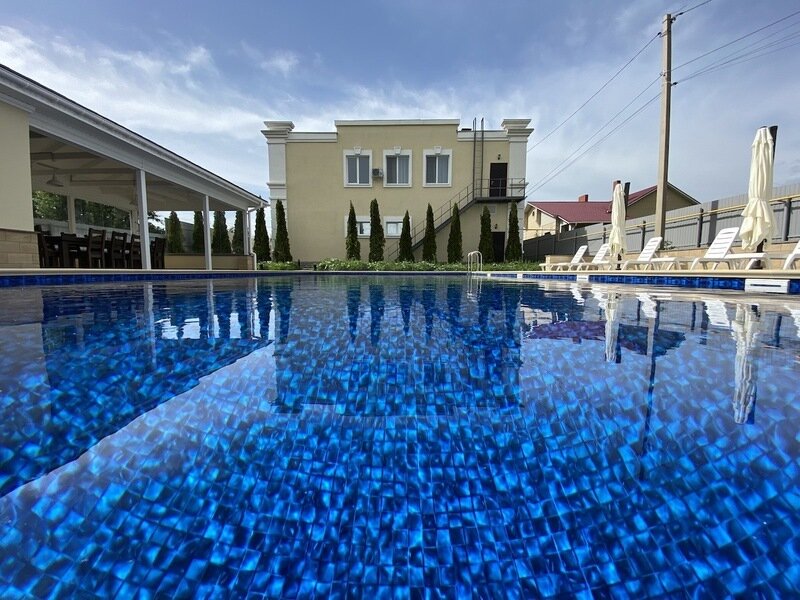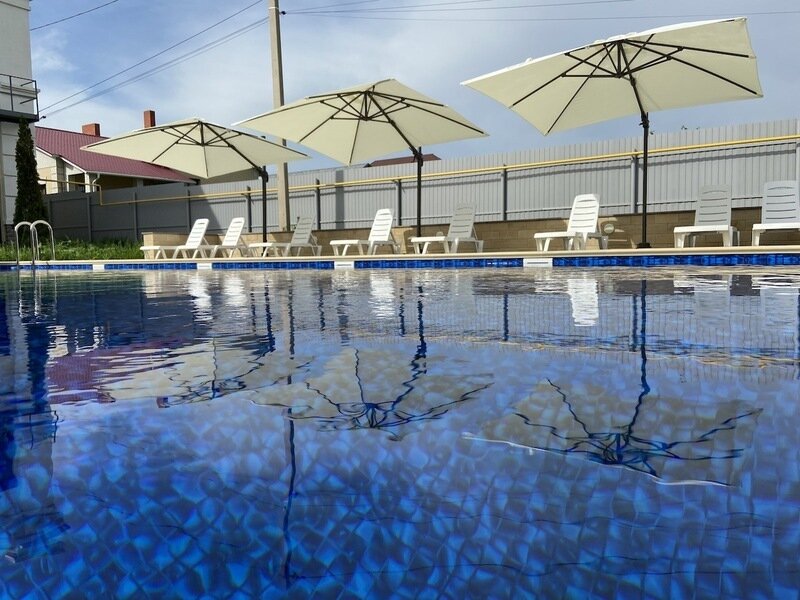 Территория, инфраструктура и удобстваКрытый бассейнРядом с сауной находится бассейн с системой фильтрации и освещения, обеспечивающий комфорт и безопасность во время плавания. Посещение бассейна входит в стоимость аренды сауны.     Крытый бассейнОписаниеТип бассейна: крытый бассейнВода в бассейне: подогреваемый бассейнРядом с бассейном: душРазмеры: 4 x 8 мПлощадь: 32 м²Глубина (диапазон): от 160 до 170 смРядом с сауной находится бассейн с системой фильтрации и освещения, обеспечивающий комфорт и безопасность во время плавания. Посещение бассейна входит в стоимость аренды сауны. Открытый бассейнБесплатно (Информация от 15 марта 2024) На территории гостевого дома в летний период доступен бассейн с системой фильтрации и освещения, а также комфортная лаундж-зона, где вы сможете приятно провести время.     Открытый бассейнОписаниеТип бассейна: открытый бассейнВода в бассейне: подогреваемый бассейнРядом с бассейном: шезлонги, зонтикиРазмеры: 6 x 12 мПлощадь: 72 м²Глубина: 150 смНа территории гостевого дома в летний период доступен бассейн с системой фильтрации и освещения, а также комфортная лаундж-зона, где вы сможете приятно провести время. СтоимостьБесплатно