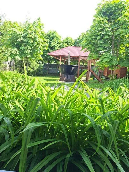 На территории имеется отдельная сауна с собственным подогреваемым бассейном. Помимо этого, имеется открытый бассейн, баня, сибирский чан, беседка и песочница для юных гостей. Для отдыхающих большой компанией обустроена парковка на 6 автомобилей.