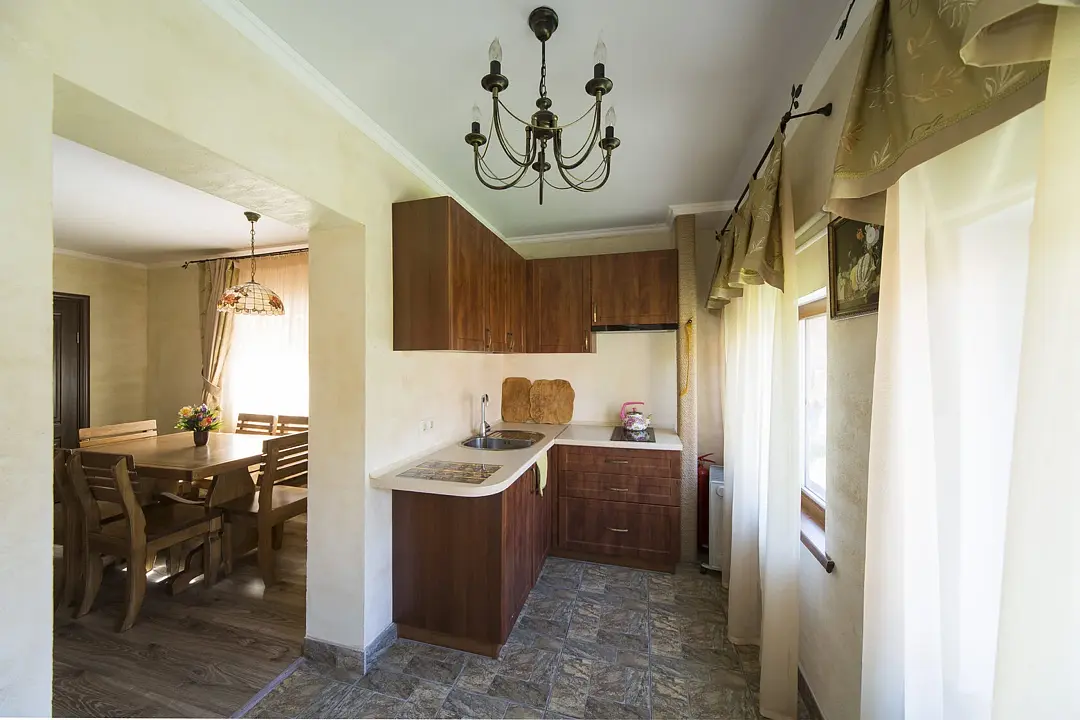На первом этаже дома расположена аккуратная небольшая кухня и гостиная. На втором этаже две комнаты, одна из которых с выходом на большую террасу с прекрасным видом на реку.