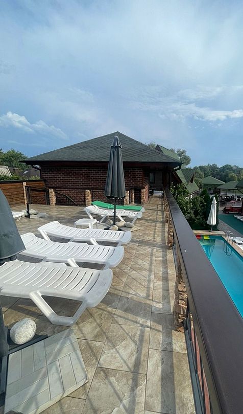 Читать полностьюБеседка-банкетный зал. Большая, просторная беседка повышенной комфортности, площадью 50 кв. метров с панорамным видом на бассейн. Эта беседка оснащена собственной кухней, камином, мягким диваном, также в беседке есть HD-телевизор, аудиосистема, кондиционер, холодильник, душ, туалет.