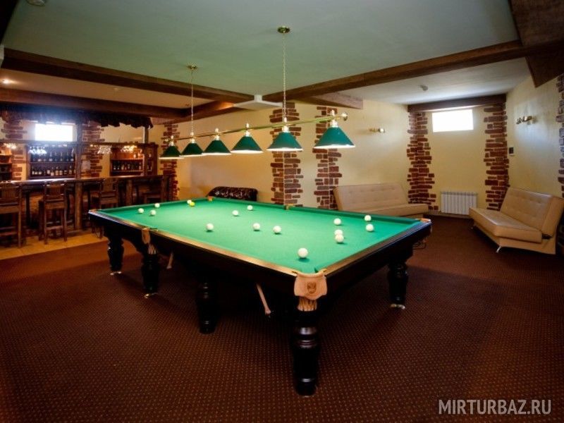 Бильярд, караоке, бадминтон, прокат мячей, шезлонги, аренда мангала, лыжи и велосипеды для проживающих более двух дней бесплатно.