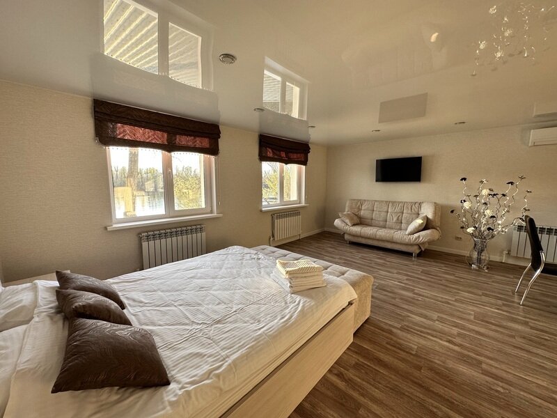 Сауна находиться на территории базы, на полуострове протоки Сазанка в г. Энгельсе от центра Саратова 20 минут. Вместимость: до 8 человек.