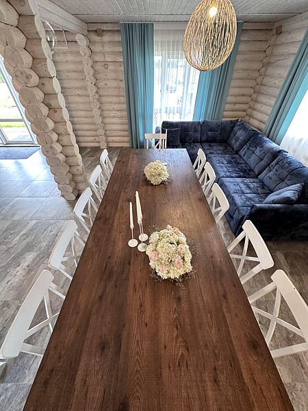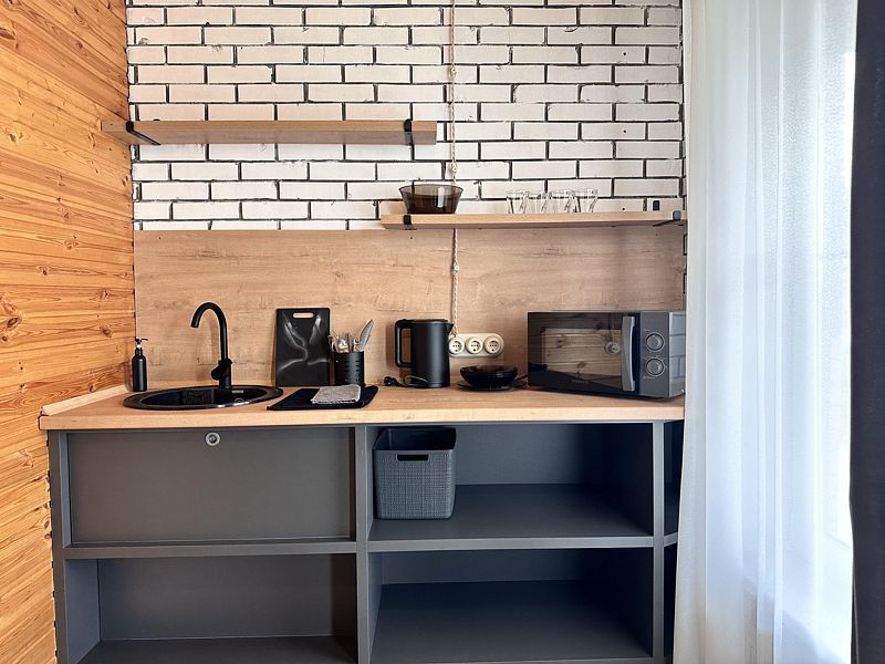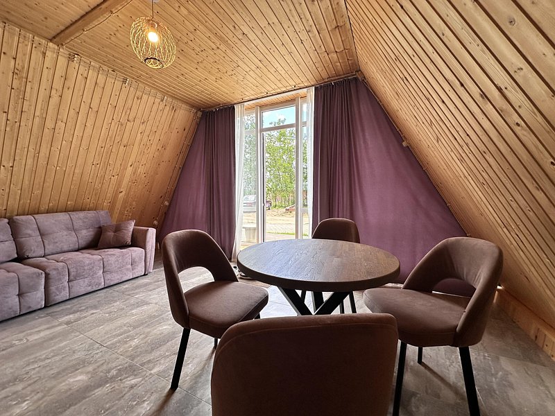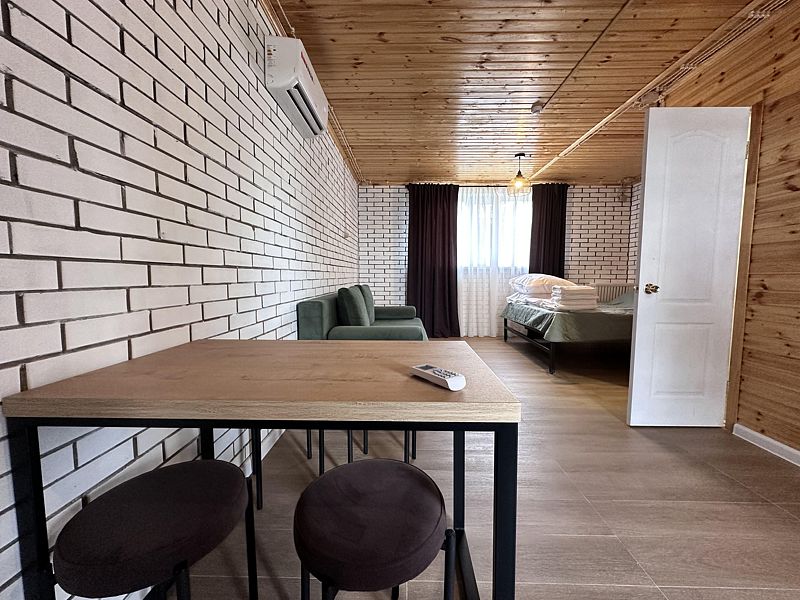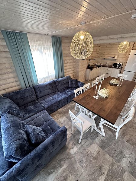 Кухня, гостиная зона со спальным местом (большой диван), столовая зона, душевая + туалет. Идеально подходит для больших компаний, праздников, корпоративов!