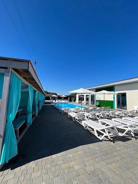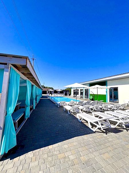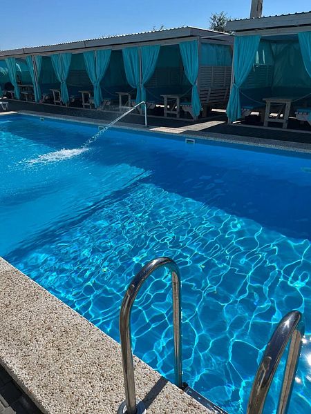 Тип бассейна: открытый бассейнВода в бассейне: подогреваемый бассейнРядом с бассейном: душ, шезлонги, зонтикиТемпература в бассейне: 30 °CВремя работы: от 10:00 до 21:50Работает летом.