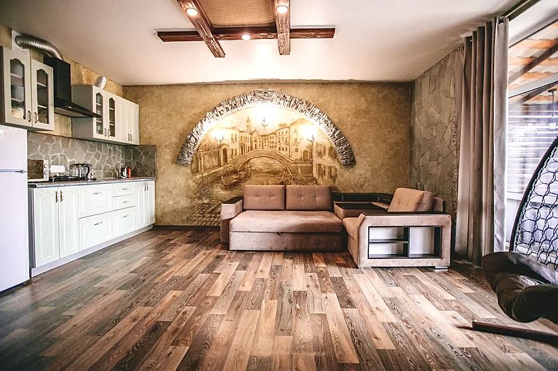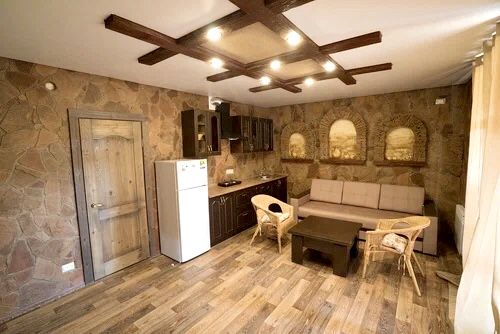 Уютные дома рассчитаны на 4–10 спальных мест. Коттеджи оснащены телевизором, кондиционером и беспроводным интернетом. Также имеется собственная ванная комната. Есть большие дома на 8-10 человек с баней на дровах. Здесь вы найдете все для комфортного отдыха.