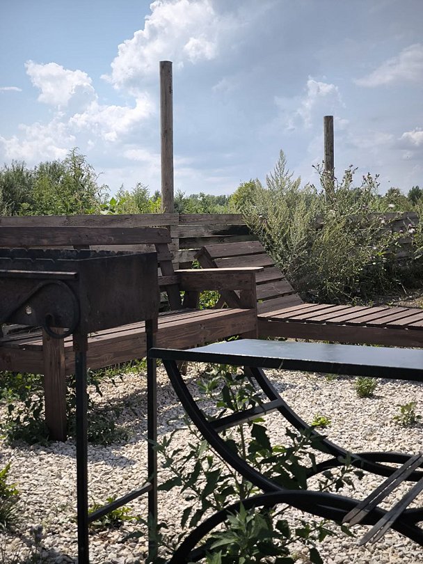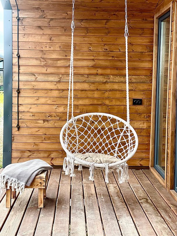 Дом полностью оборудован для того, чтобы пребывание было максимально удобным и уютным. Пространство включает в себя мангальную зону, решетка (уголь, розжиг можно приобрести за доп. плату), просторная терраса (стол и стулья), качели, шезлонги.