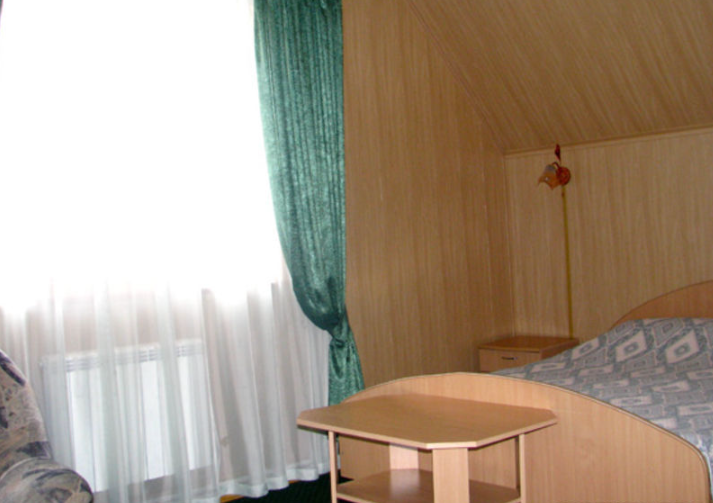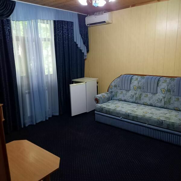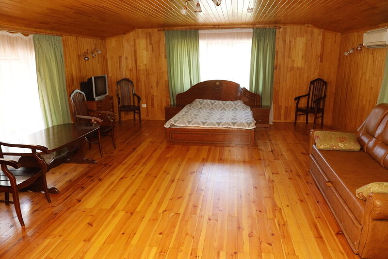 В доме имеется летняя веранда с креслами и столиком.В номере - две комнаты, имеется сплит-система. В гостиной: раскладной диван, два кресла, телевизор, холодильник, чайник. В спальне: большая двухспальная кровать, прикроватные тумбочки, шкаф-купе. Ванная комната: душевая кабина, унитаз, умывальник, зеркало. Предоставляется постельное белье, набор полотенец, туалетные принадлежности.