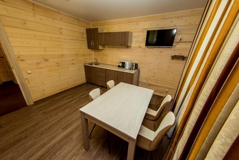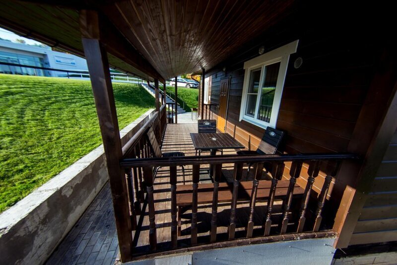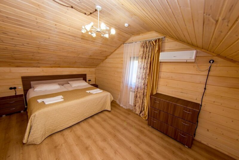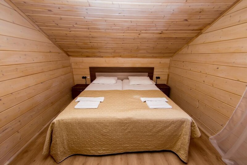 В распоряжении гостей два двухэтажных финских дома, рассчитанных на четырех человек, но за дополнительную плату можно разместиться на раскладушке. Отдыхающие могут воспользоваться комнатой отдыха с двуспальным диваном и спальней с двумя одноместными кроватями. Также в доме есть санузел и душ, а на застекленной лоджии можно вечером любоваться склоном. Дома из сруба под названием «Русская изба» снабжены всей необходимой мебелью и техникой для комфортного пребывания на курорте. В трех домах уровня vip имеется сауна, во всех есть санузел и душ.
