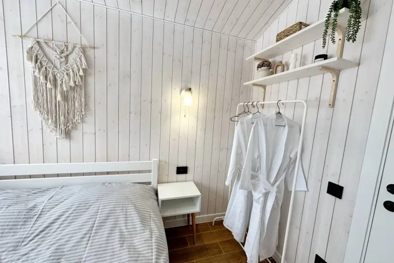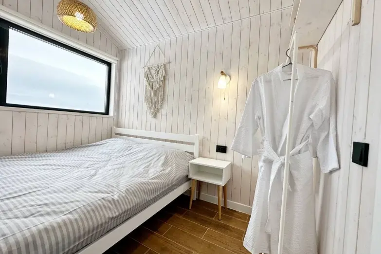 Одноэтажный светлый и уютный домик для отдыха с просторной гостиной. В доме одна изолированная спальня, гостиная, обеденная зона, кухня, а также санузел с душем. Детская кроватка (по требованию). Имеется вся необходимая техника и посуда для вашего комфортного отдыха.