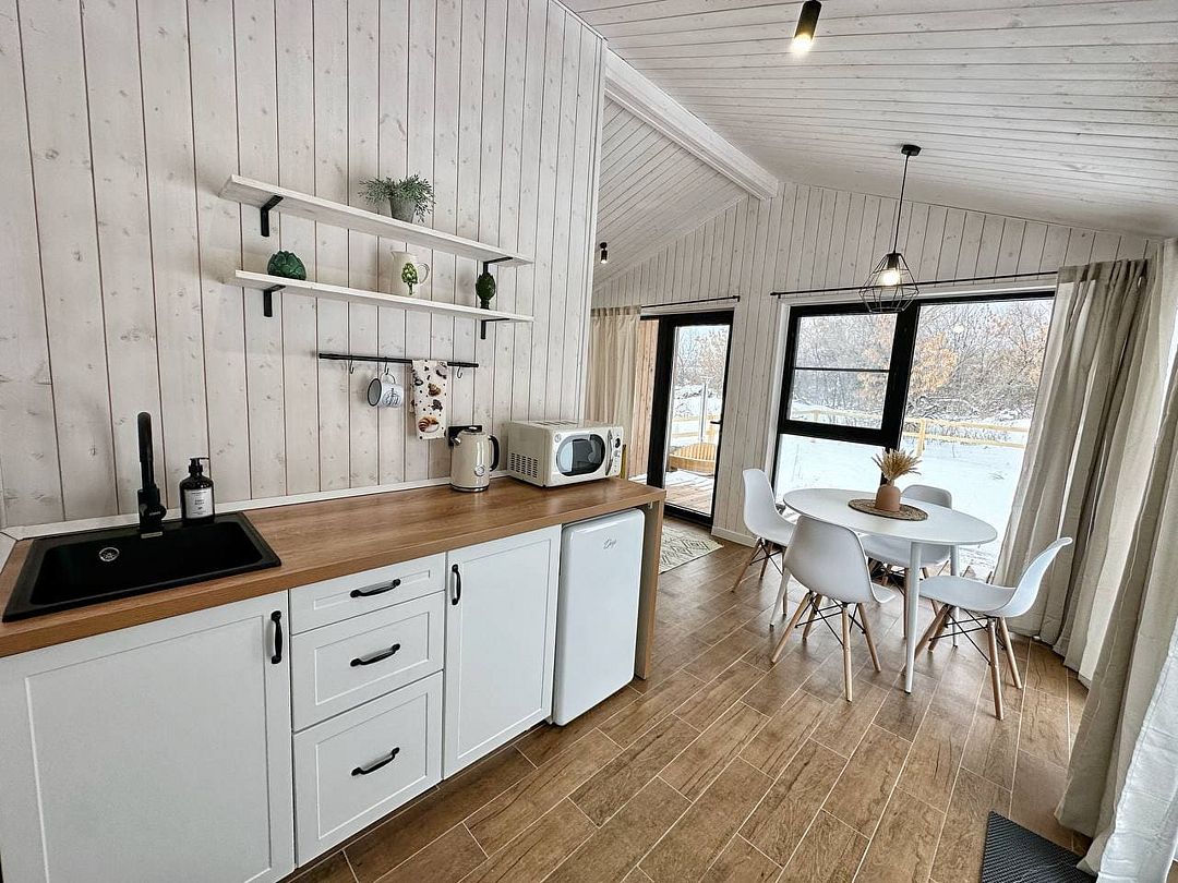 Одноэтажный светлый и уютный домик для отдыха с просторной гостиной.