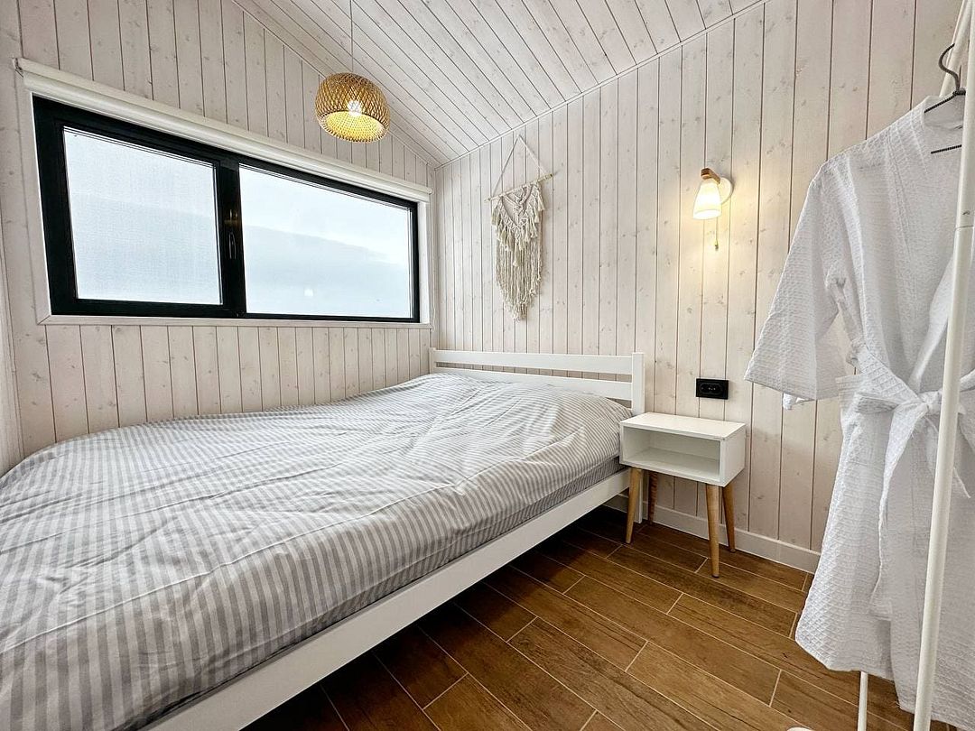 Светлый и уютный одноэтажный дом предлагает комфортную обстановку для отдыха. Внутри вас ждут просторная гостиная, отдельная спальня, столовая, кухня и ванная комната с душем. Дом полностью укомплектован необходимой техникой и посудой для удобства гостей.