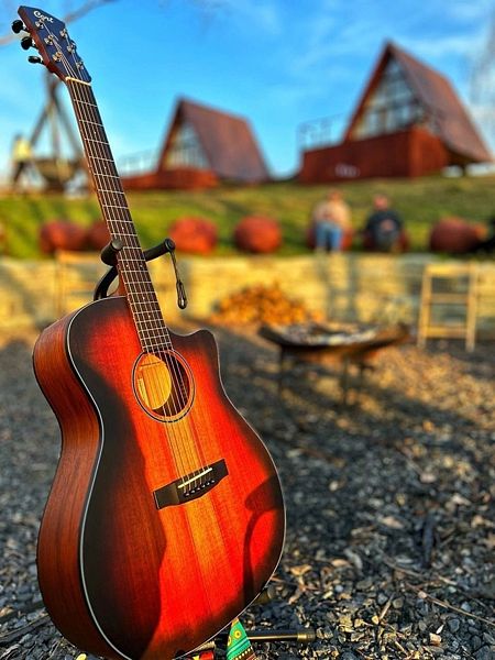На живописном берегу реки, в уютной костровой зоне, разжигается большой костер, вокруг которого собираются гости — чтобы наблюдать, как солнце плавно опускается за горизонт, отражаясь в водной глади, и слушать мелодичные звуки гитары. Этот умиротворяющий момент завершения дня создает ощущение причастности к вечным циклам природы, наполняет душу спокойствием и гармонией.