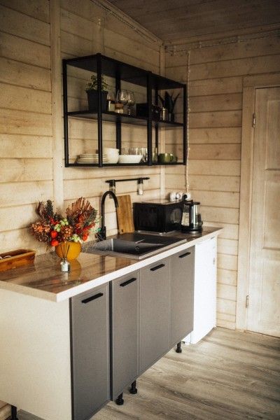 Кухня (чайник, холодильник , микроволновая печь, электрическая плитка на 1 конфорку, сковорода/ковш, посуда, бокалы), питьевая вода / чай / кофе /cахар, ванная комната (одноразовые душевые принадлежности , зубные наборы , фен, тапочки, полотенца) а также халаты при бронировании сибирского чана.