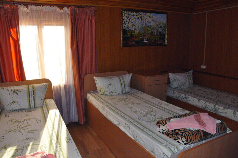 Трехместный номер с раздельными кроватями и ванной комнатой.