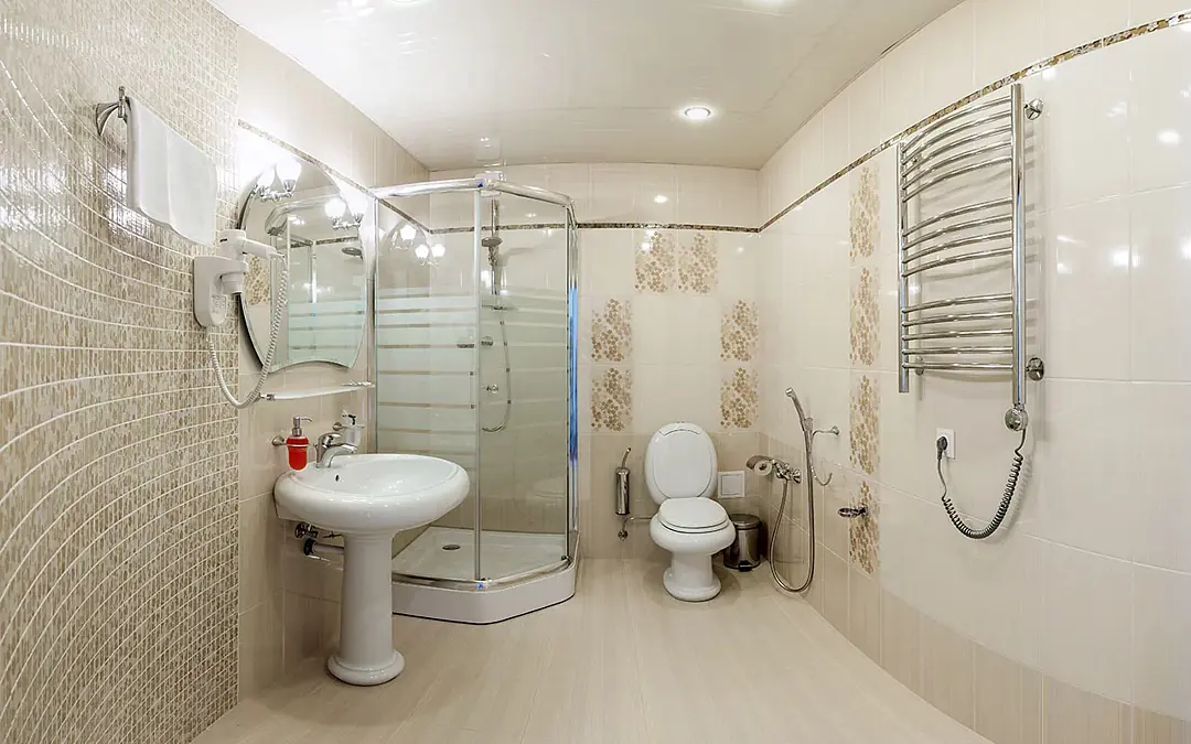 Санузел с душем, ТВ, сплит-система, мини-холодильник