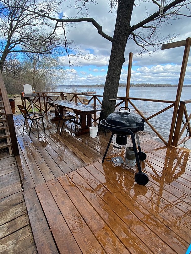 Инфраструктура: зона отдыха, душДом на берегу с баней и открытой верандой. Живописный вид на реку