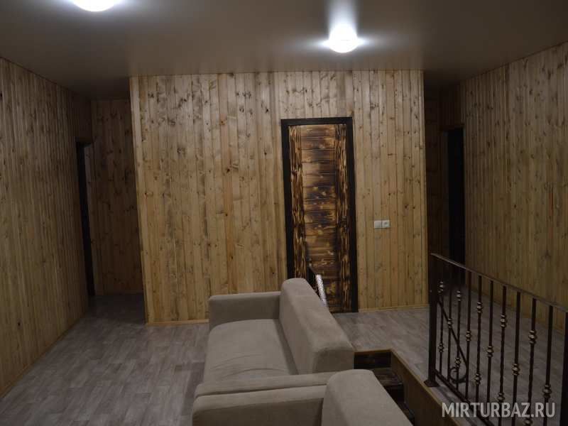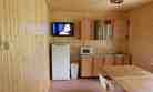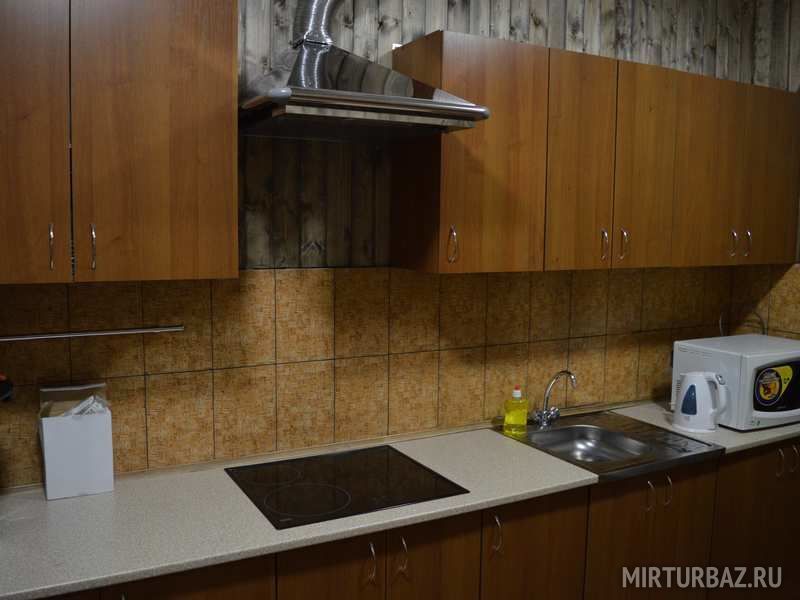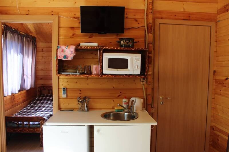 Эконом-класс. Полдомика со всеми удобствами. До 10 человек. Холодильник, микроволновая печь, чайник, горячая/холодная вода, душ, туалет, ТВ. 3 спальни и кухня.