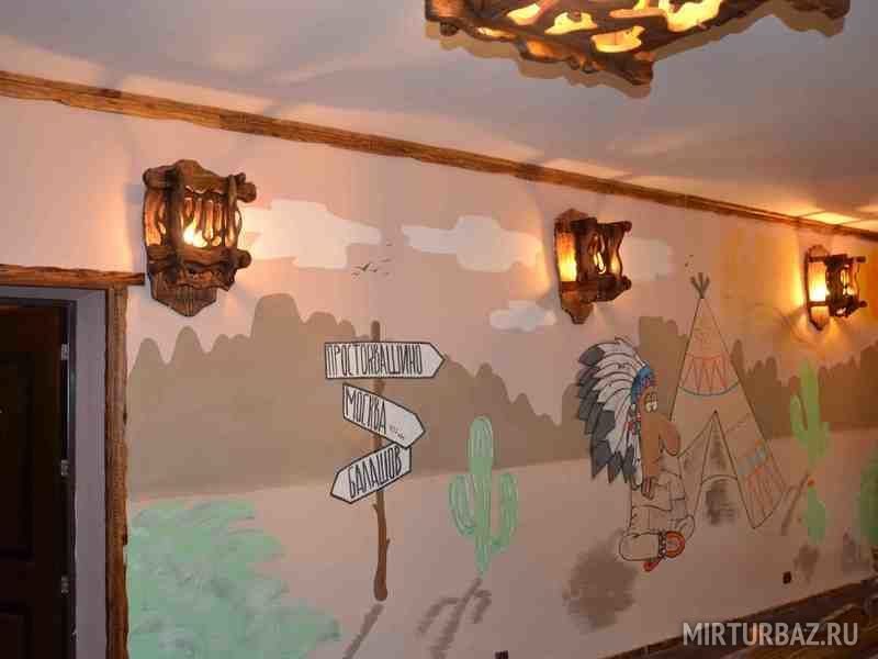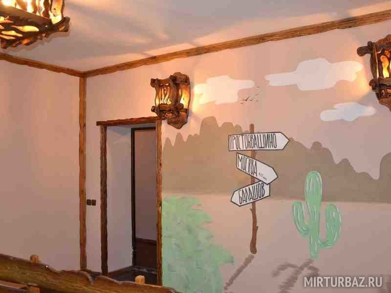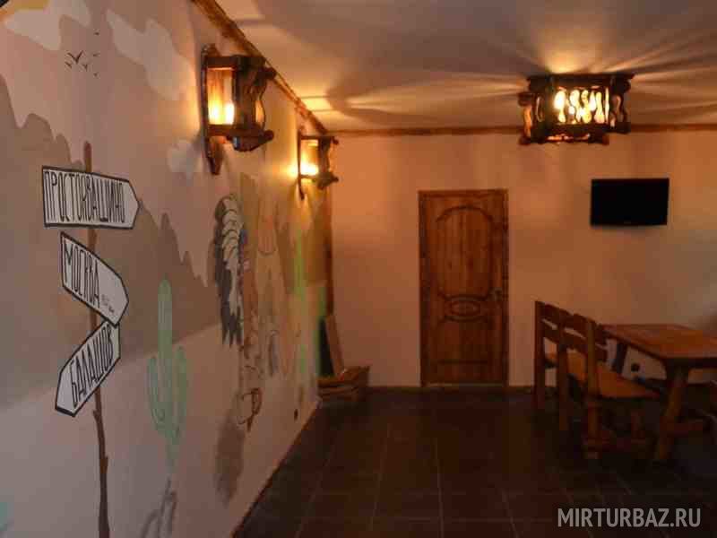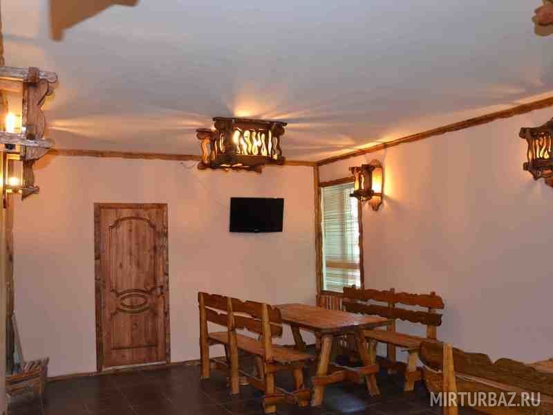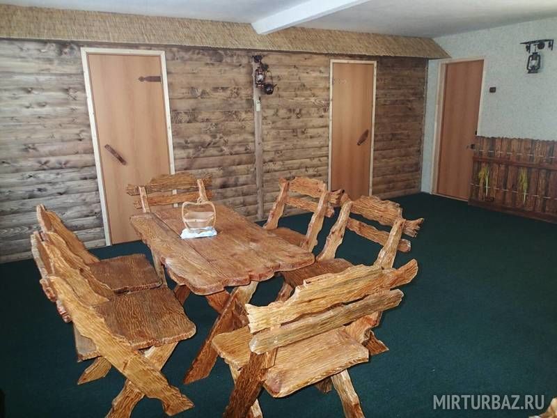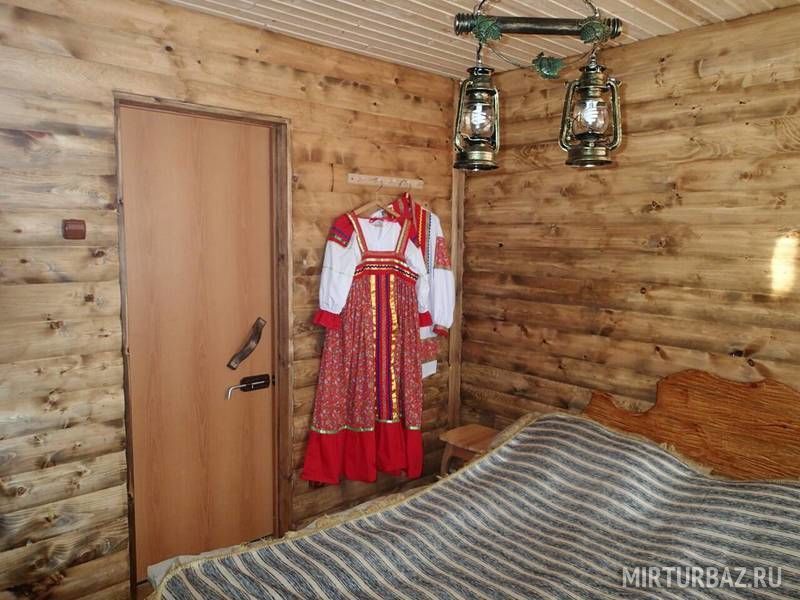 В «постоялом дворике» есть всё для комфортного пребывания: кухня со всем необходимым, сан. узел, душ и конечно горячее водоснабжение, спальных мест — 8, мебель дышит стариной. А чтобы с головой окунуться в атмосферу старо-русской деревни, можно облачиться в русские народные костюмы, благо висят они в каждой «избе».