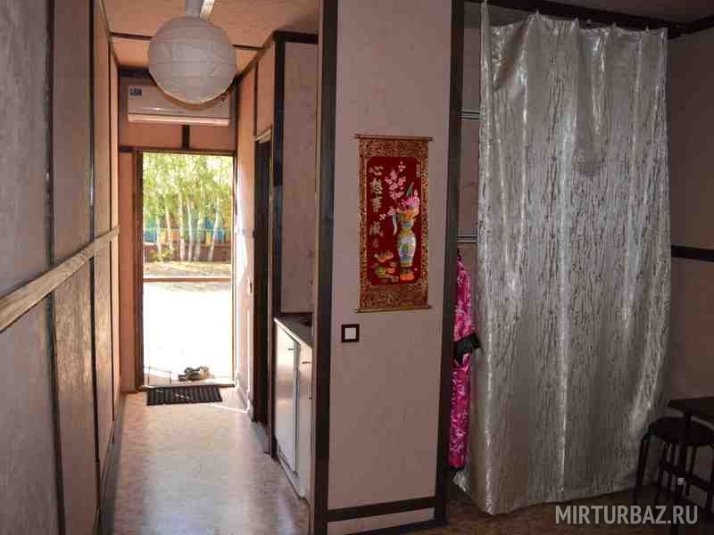 Комнаты в японском стиле. Двух и четырехместные. Холодильник, микроволновая печь, чайник, горячая/холодная вода, туалет, душ. Открытая веранда.