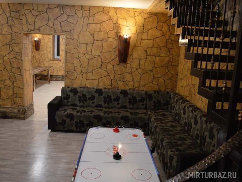 Домик со всеми удобствами. 16 спальных мест. Большой просторный зал, вместимостью до 50 человек. Оборудованная кухня. Парная. Душ. Два туалета. Стол для настольного тенниса. Аэрохоккей. ТВ. Акустическая система.