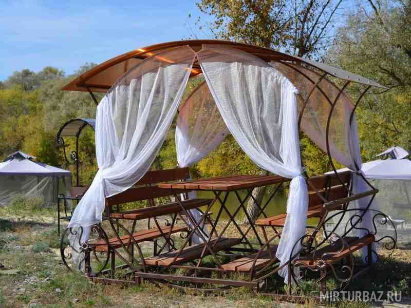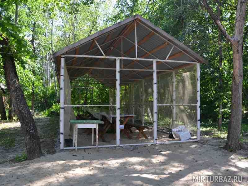 Малые и средние беседки. Вместимость от 5-7 до 15-20 человек. В некоторых есть розетки и освещение. Рядом с каждой беседкой — мангал.