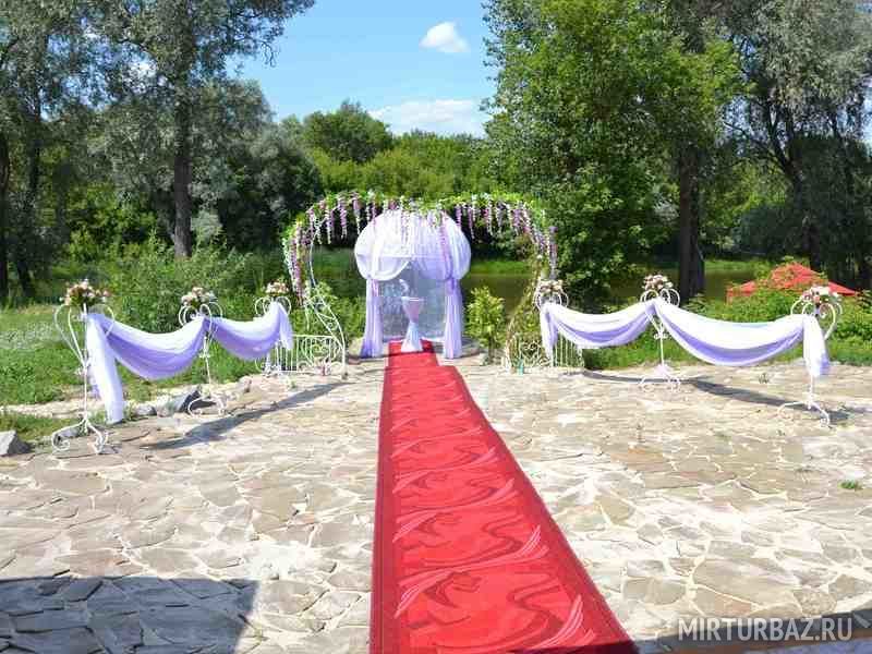 На базе отдыха «Простоквашино» есть 2 площадки для проведения выездных регистраций, Одна на большой открытой площадке с видом на реку, вторая – в тени деревьев на высоком берегу реки. Выбор за вами!