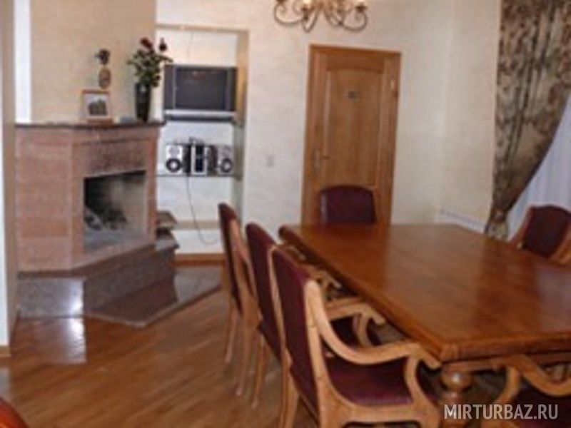 1 этаж: оборудованная кухня, столовая-гостиная с ТВ и камином, санузел с душем.