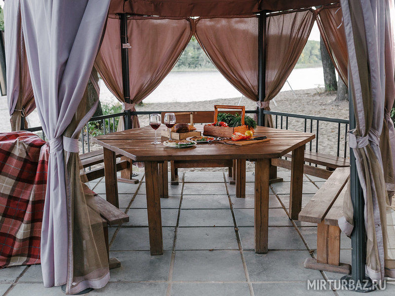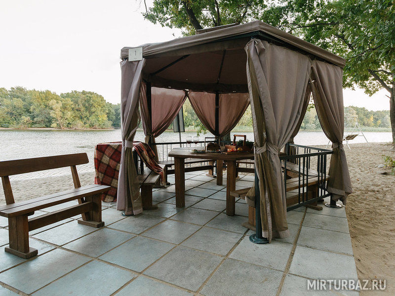 Беседки с мангалами, холодильником, столом - все для удобства отдыхающих. 20 беседок, каждая вместимостью на 10-15 человек, расположены по всей территории загородного клуба рядом с пляжами. Можно купаться, загорать и жарить шашлыки одновременно.