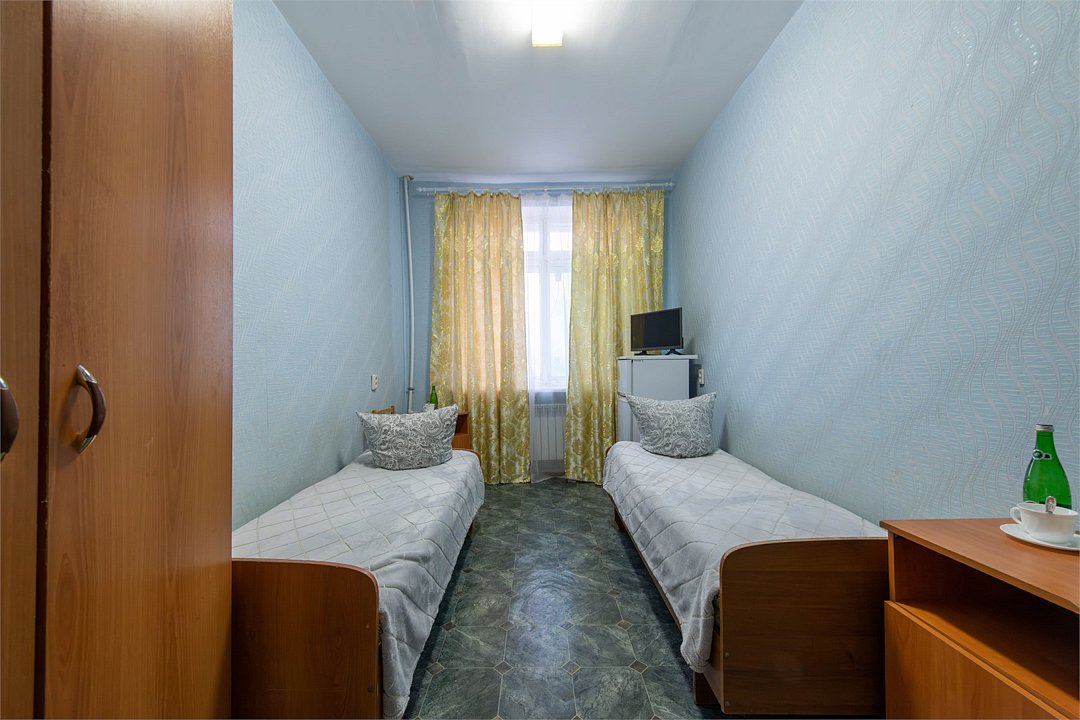 В данном номере имеются две односпальные кровати, базовые удобства (холодильник, ТВ, санузел и душевая на этаже)