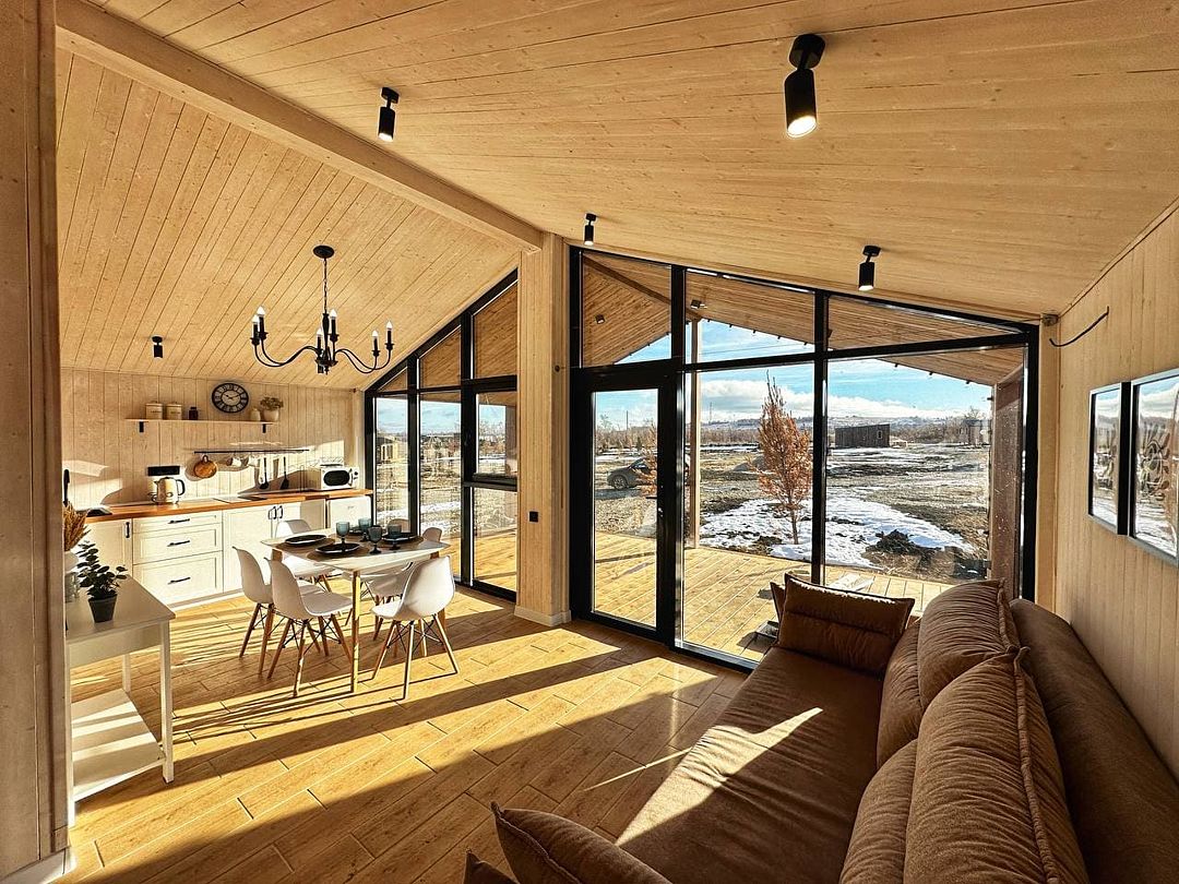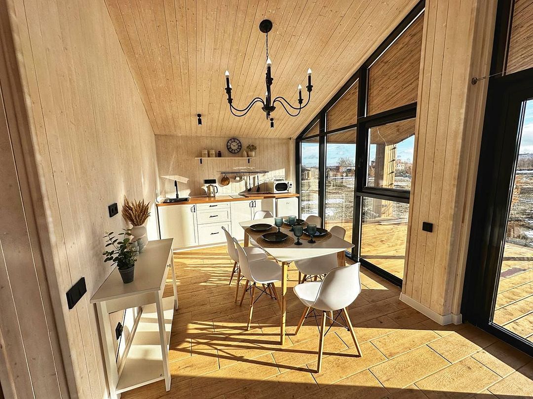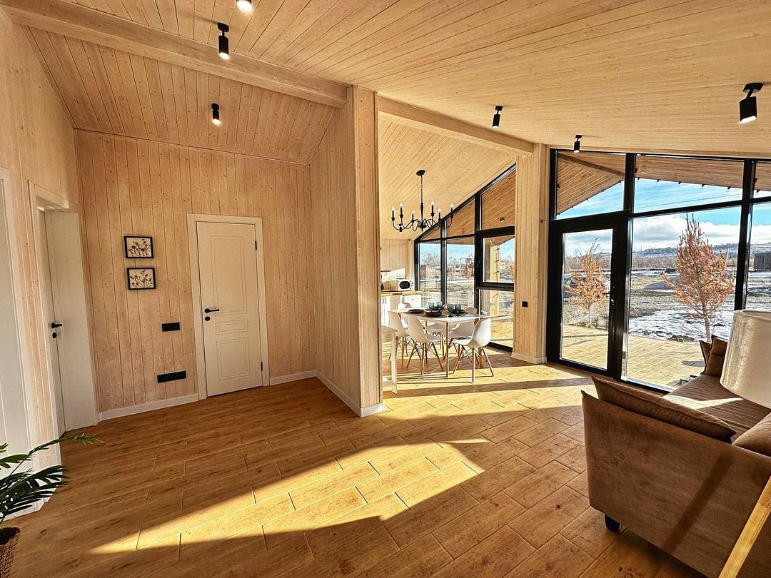 Уютный коттедж «Шале» с панорамными видами на горы и Волгу расположен в Хвалынске, рядом с горнолыжным курортом и термальными источниками.