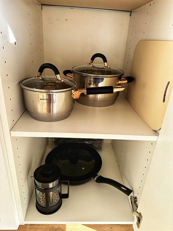 - посуда для готовки (салатники, ножи, разделочные доски);